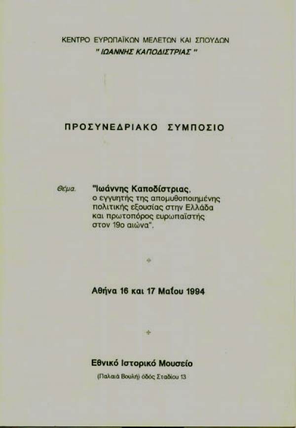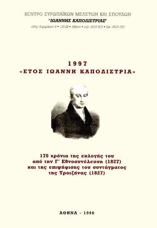 Με πρόταση του Διοικητικού Συμβουλίου του Κέντρου Ευρωπαϊκών Μελετών και Σπουδών «Ιωάννης Καποδίστριας», το έτος 1997 ανακηρύχθηκε ως «Έτος Ιωάννη ... Read More